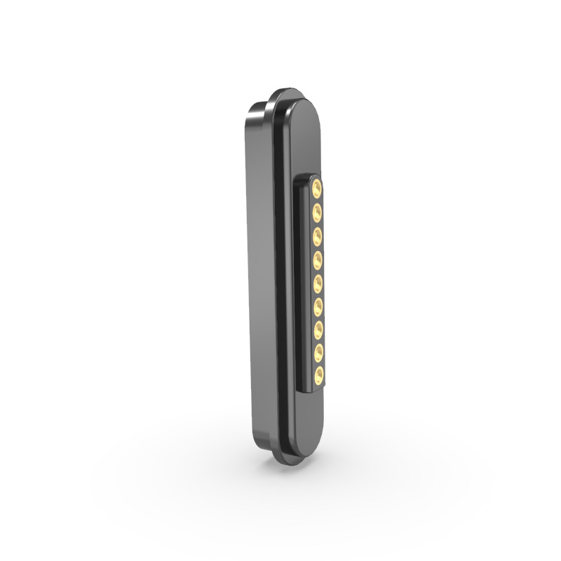 ৯ পিনের চৌম্বকীয় সংযোগকারীগুলি নিরাপদ সংযুক্তির জন্য একটি উচ্চ তাপমাত্রা নাইলন হাউজিং এবং NdFeB চুম্বক সহ ৯ টি পোগো পিন ব্যবহার করে।